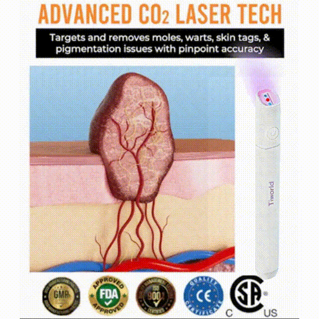 Tiworld™+ All-in-One Laser Eraser Pen uses medical-grade CO₂ laser technology to remove moles, skin tags, warts, and pigmentation spots safely at home.