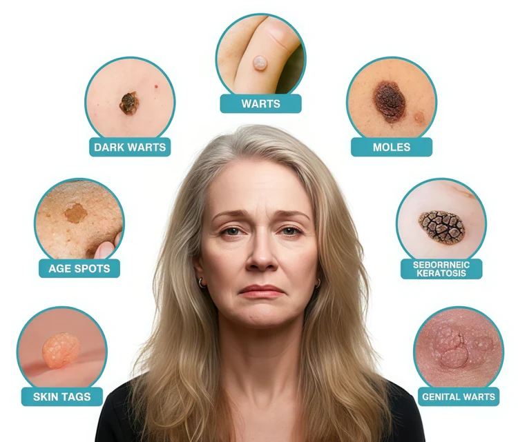 Aging, sun exposure, and stress slow down your skin’s natural renewal, causing blemishes like skin tags, moles, and dark spots to linger. Traditional creams or freezing kits only treat the surface, not the root cause.